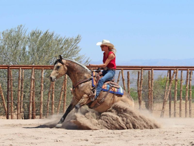 Look no further if you are wanting that “once in a lifetime” kind of gelding! Beamer will definitely check at box! He’s BUCKSKIN and an own son of leading sire, One Time Pepto! This gorgeous gelding is as pretty as a picture, conformationally balanced and correct. His soft, kind eye will steal your heart and his sweet and loving personality is second to none. Beamer will do it all. If you only have a one horse trailer, he will be your go to every time. He is extremely versatile and well rounded. Beamer has an accomplished record in the AQHA earning 48 points. He has open points in Reining, Ranch Riding, Ranch Versatility, Conformation, Cowhorse, and Cutting! Such a talented and proven gelding that does it all! He does all reining and cowhorse maneuvers easily, with effortless lead changes, cute spins and deep sliding stops. He guides easily and is very simple to pilot. He will really shine in the Ranch Riding & Versatility events. Beamer is very cowy and fun to work out of the herd. He is handy in the sorting pens and makes a day’s work enjoyable. He is good to rope steers on and makes your job easy. We have used him all over our Texas ranch and also have ridden him on countless rides in the Arizona desert. Beamer is safe and sane for any level of rider. He is very smooth and comfortable to ride. He remains extremely gentle even with substantial time off. He is one that you can saddle up and go enjoy without hesitation. There is no silly stuff to him and he remains the same every ride. Beamer will meet you at the gate and is always easy and eager to be caught. He is a very willing partner that aims to please. Beamer is a phenomenal gelding with all the bells and whistles!
