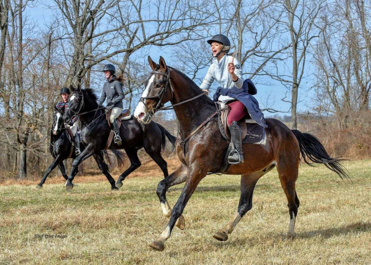 Off property, Boss is up for anything. We have taken him all over the area for hunter paces, paper chases, and horse shows. Ride him up front and ask him to move forward and take all of the big fences, or relax and ride in the back and he will happily comply. He is careful over solid fences, and mindful of rough terrain out in the woods. Boss has many trail miles and is a breeze to ride. He is quiet and safe enough for the children to climb on for a trail ride or for a hunter pace. Boss will cross water, logs, roots, rocks, roads, and more.