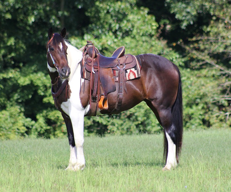 Big Beautiful and Classy… Fiona lives up to her name! She stands a stout built 16hh. She is for sure big enough to carry any size of rider. She has been involved in every aspect of ranch life from herding to sorting and doctoring on a daily basis. She has a great handle, slide stops, backs, opens/shuts gates and will track a cow. She is not afraid of a mad momma cow or an aggressive bull, she will stand her ground. She will ride anywhere in the group… front, back, middle or head off on her own without a fuss. Fiona is quiet to handle, does all the basics, washing, pickup feet, load and is easy to groom. She has been ridden in rough country and will climb the steep hills, she goes patiently and easy down the rocky mountain sides, crosses water, bridges, logs, and anything else that might be in your way. She is traffic safe as well. Fiona has got along with other horses when she’s turned out in my pasture and hasn’t caused any fuss. She stands quiet if she’s in his stall. From Ranch to Trail she is safe and broke and someone is going to get a great riding partner for years to come!