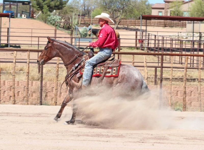 Here is the complete package! This stunning bay roan gelding checks all the boxes! You won’t find a more kind, honest and sweeter gelding than Patriot! Whatever you want to do horseback, this will be your guy! Wether you need to do a days work or just ride to the mailbox, you will enjoy riding Patriot. He is absolutely gentle and safe for anyone and everyone! Great horse to gain confidence for a timid rider. He will ride up or down to whatever speed you desire. Patriot cuts a cow and is super handy to use for gathering and sorting. He easily side passes to gates quietly stands while you open and close them. He rides great outside and is confident alone. He goes right where you send him without hesitation and is steady in all types of terrain. We have roped on him in and outside of the arena. Patriot is cool as a cucumber in all situations and circumstances. He is super smooth and comfortable to ride. He will eagerly meet you and the gate and very quiet and gentle to handle. Standing 15 hands, it’s hard to find one with his breeding that has his shape and size.