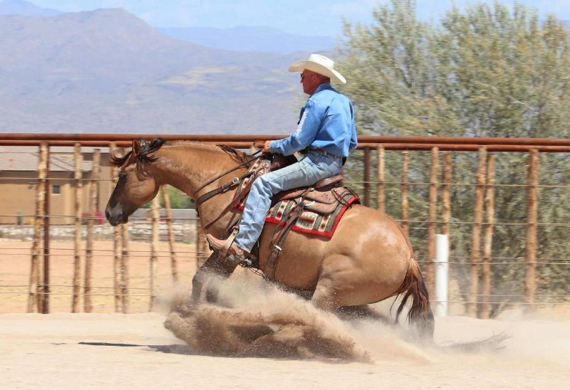 Peach is absolutely the most adorable gelding with a stout bulldog build, super fun color, large dorsal stripe down his back and tiger striped legs to his belly. Peach rides as good as he looks and is extremely versatile. He does everything! From reining, ranch work, cow work or just a fun, safe ride out on the trails this will be one that you will enjoy each and every ride. Always gentle, honest and easy going even with time off. Saddle him up and go enjoy! Peach easily performs all the reining maneuvers with long sliding stops, snappy spins and easy lead changes. He would be fun to show in the Ranch Riding and Versatility events. He has a super smooth jog and rocking chair lope. He has been ridden all over our Texas ranch as well as many miles in the Arizona. He is confident alone out on the trails and will go right where you point him. He is very sure footed and has a good outside walk. Peach is a very people friendly horse that loves any kind of attention making him super fun and easy to have around the barn. If you want to go show, pleasure ride, or both, Peach is a perfect fit and complete gentleman for any level of rider.