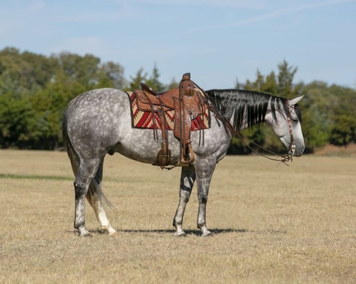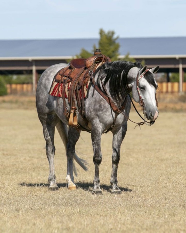 Pirate will be one of the fanciest horses anywhere you take him. Standing 15.1 hands, he is breathtaking gorgeous and has the talent, mind, and ability to go do anything you want to do horseback. If you own a one horse trailer, he will be your one stop shop! He would excel in Cowhorse events or make a jam up ranch versatility competitor. He has big, deep stops, lopes pretty circles on a draped rein, and spins like a zero-turn lawn mower. Pirate knows all about ranch life. He’s sure footed, has a great ground covering walk, and will go right where you point him. Pirate has been roped on in the arena, out in the pasture and in the branding pens. He is good with loud gunfire, heavy machinery, blowing tarps, busy traffic, crazy dogs and whatever else you want to throw his direction. Pirate is safe, sane, tolerant and gentle for any level of rider. You will wear out a pickup truck trying to find one this versatile, fun to ride, and easy to own. His attractive looks and black type pedigree are just a bonus.