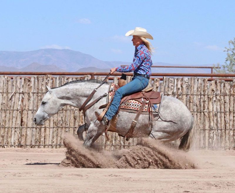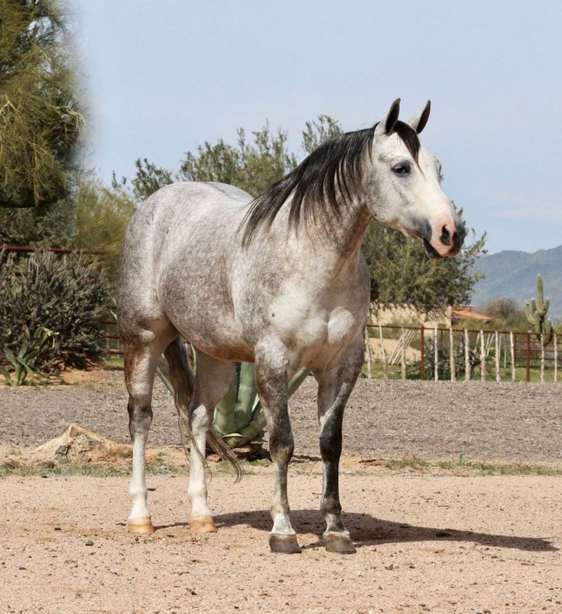 Seriously cuteness overload with his gorgeous dappled gray color and precious defined head with soft, kind eyes that will touch your soul. Ramos is beyond his years and is truly an old soul. With the very best beginning and foundation, Ramos just didn’t want to go quite that fast and be the superstar athlete they needed him to be. So with that being said, Ramos does all the fun Reining maneuvers and has all the fun buttons, but would rather do things on a lower scale. He has cute spins, easy changes leads, and has a smooth sliding stop. He is a gorgeous mover and is very push-style. He would excel is Ranch Riding or Ranch Versatility competition. Ramos always saddles up gentle even with time off. He just wants to get along and be a good boy. He is simple and easy to ride and just a fun horse to have around. I truly believe he enjoys seeing the wildlife and taking in the beautiful scenery. He knows where his feet are and can navigate easily on the granite rock, through the prickly cactus and is sure footed through rocky and mountainous terrain. He will guide right where you send him willingly without hesitation. We have roped the dummy and the lead steer a ton on Ramos. He will run right up to a cow and has great rate and timing. He’s handy to use all around the ranch and will side pass to open all the gates, cross bridges, drag logs, and ground ties where you drop a rein. Ramos will follow you around like a puppy dog demanding attention and will run to the gate when he sees you eager to be caught. He is a great size standing 14.3 hands with flawless, stocky conformation. Ramos knows some fun tricks and has been exposed to a little bit of anything and everything. He’s a happy camper that has handled all the shenanigans we have thrown his way. He has an inquisitive and humorous personality making him fun to work with. Ramos is cute as a button, super gentle, and will fit so many people! Check him out if you are wanting one ABOVE AVERAGE!