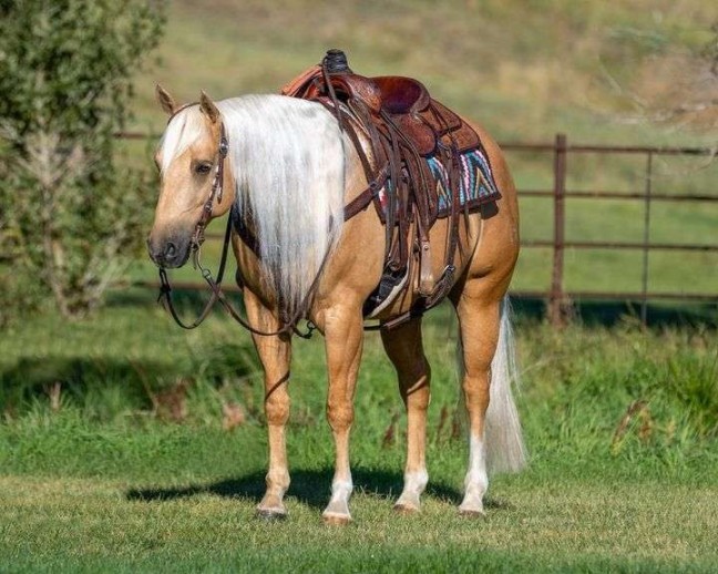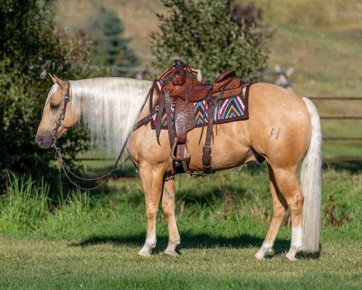Going far beyond the ordinary, Robinhood is what dreams are made of! Faithful, Smooth, Reliable, Gentle, and handmade perfection. We are excited to introduce you to this versatile horse! His versatility and gentle nature make him a trustworthy choice. Robinhood has been ridden by various levels of riders at our ranch, on the trails and in the arena. We notice that he works at his rider’s level and is non-reactive to mixed cues. A total LOVE bug who looks forward to his time with his person daily. He is captivating to ride in & out of the arena and uncomplicated, even bridleless and bareback. Robinhood is trained to kneel and curbside to make mounting easy! Robinhood keeps it simple for his rider: point & go, stop, & stand. Having owned Robinhood from a baby 3 year old, we can pull him out no matter how much time goes by with zero worries. He has a baby-sitter demeanor; you can catch him anywhere, hop on bareback, or saddle him up and go! He sure captures the judge’s attention in the show ring with his presence. A soft and graceful ranch riding mover performs reining maneuvers with ease, phenomenal gait transitions, lead changes, spins like a top. Rides on a draped or contact rein with a great jog and rocking chair lope. Tack him up English, where he so fluidly guides with direct rein and floats across the ground. ABSOLUTELY LOVES trail riding, confident & steady in all situations regardless of location. Quiet on the city streets with the hustle and bustle of semis, strollers and bicycles. He is agile and sure-footed in rocky terrain, knows where to put his feet, walks through water, over bridges, over logs, through the trees, up and down the hills. He has been ridden down our city streets with bicycles, motorcycles, and pedestrians. He doesn’t let his feathers ruffle, even with gunfire, plastic bags, and fireworks. Classy as they come packing youth, beginners, & rides to the level of his rider on his back. He gets along with other horses in turnouts and the trailer. Robinhood isn’t afraid to get his hooves dirty, as he has also been an asset on the ranch. Used for daily tasks such as cattle drives, sorting buffalo and cattle, doctoring, and branding. In roping, he is a standout with a lot of natural ability, run, and rate! He has impeccable manners, is patient when tied, likes bathes, and is one you could trust with toddlers. To say we love Robinhood is an understatement, and we know you will agree too. He has the looks, disposition, conformation, and talent for a lifetime of memories. Whether your interests lie in leisure trail rides, ranch versatility, western dressage, loping across pastures, reining, mounted shooting, roping & ranching, or simply being THE best buddy, Robinhood is the perfect partner for your endeavors. We would love to schedule a time for you to try him for yourself.