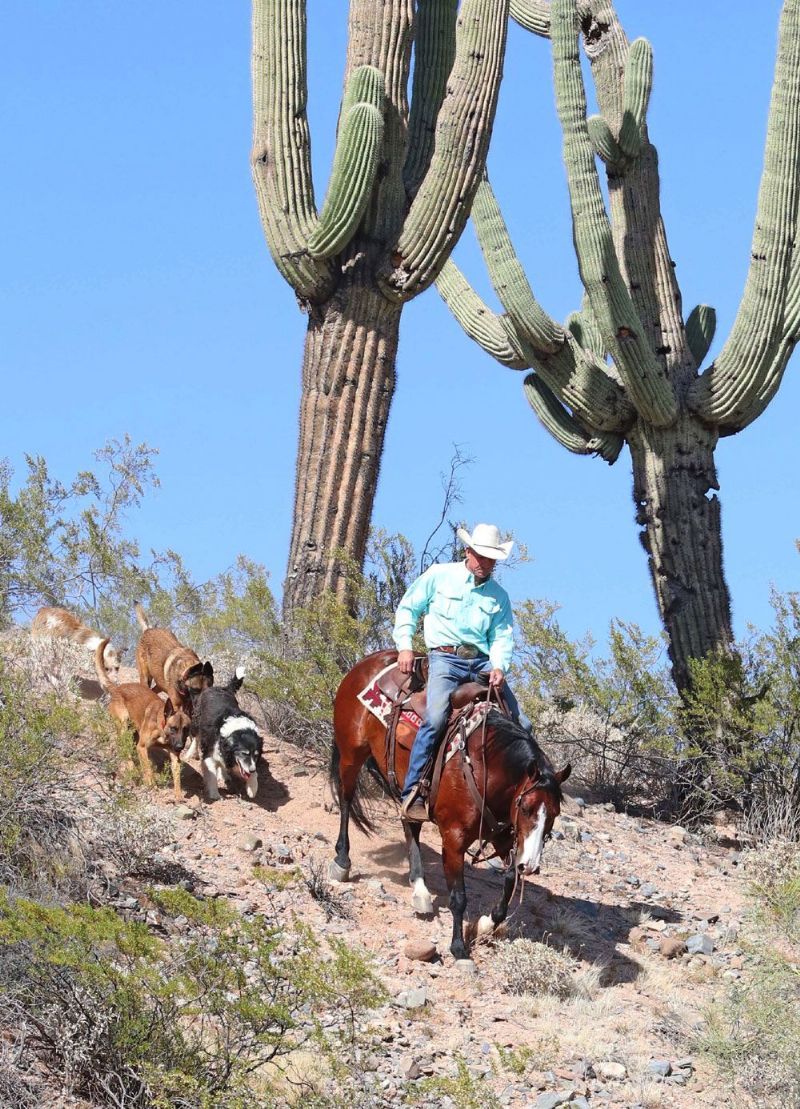 Storm is a big, kind and handsome guy that just wants to please. He was started in the reining pen and was shown locally in the ranch horse classes including ranch trail, ranch riding, and some boxing by an older lady. Storm has a smooth jog, nice extended trot, and a comfortable lope on a loose rein. He has an easy lead change, good spins, and fluent side passes. He has been over all kinds of trail obstacles including poles, bridges, jumps, dragging logs, and tarps. Storm is a very safe gelding for the entire family. He is always gentle, quiet and easy to handle on his back and on the ground. He has a great neck rein and guides effortlessly. He willingly goes right where you send him without hesitation. He’s accustomed to running rivers, lakes, thick brush, prickly cactus, and mountainous terrain. Storm is a great beginner type horse or would suit someone wanting to build some confidence. He’s got more whoa than go and would just assume go slow, but has plenty of get up and go if asked. He’s great around cattle, dogs, pigs, buffalo and camels. Storm has a sweet and loving disposition. He will meet you at the gate and follow you around eagerly awaiting attention.