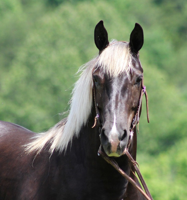 Winnie is a super stout built, Rocky Mountain Mare, standing 15.1hh, is that classic dark chocolate color with a platinum blonde mane and tail! She is built like a tank, built to carry a heavy load but gentle enough to carry the precious cargo! She has miles and miles of experience! Winnie has been camping and trail ridden at large campgrounds and has been on week long camping trips. She is easy for me to catch, clip, bath, tack-up, load, and handle. She has a natural smooth 4-beat gait that covers the ground with ease. No matter where she goes or what she does, Winnie is not spooky acting and on the trails she is always great! She will ride anywhere that she is asked whether that be in the front or back of the group. She is confident and leave the barn or other horses with no issues. She has been exposed to all kinds of wildlife such as deer or turkey or other animals like cows or dogs and will go anywhere that she is asked too. She has been rode many miles in the mountains and encountered every obstacle possible on the trail. She will go up or down even the steepest slopes, across deep creeks, over downed trees, and over all types of rough terrain while still being sure footed. She has been rode in traffic, and is very traffic safe around cars, semi, log, and dump trucks. She has a great personality and a great attitude about whatever she is asked to do.